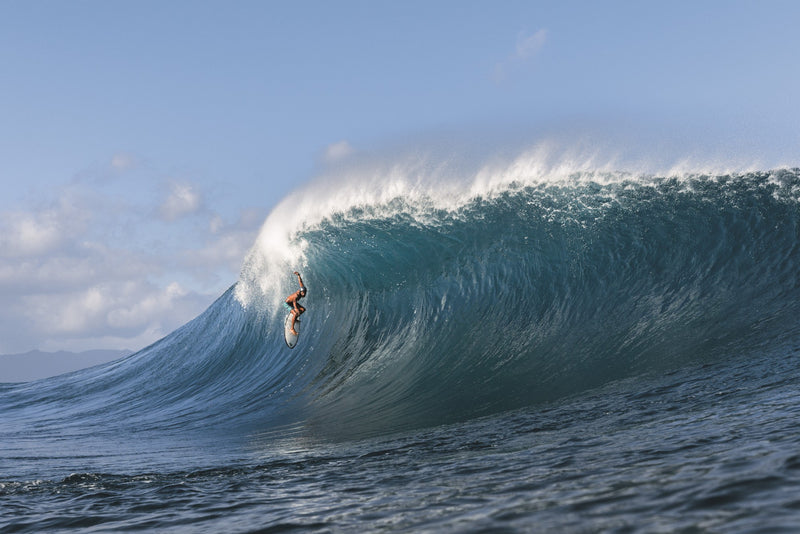 “Ten minutes later, I was sitting in the same spot, and the wave came in. It had the same look as Kohl’s, but thicker and bigger. I knew it was going to be a super special one. I started my bottom turn and pumped as hard as I could towards the lifeguard tower at Ehukai. It looked like a long Desert Point wall. I was in the barrel just telling myself, ‘Hold on! You better make this thing.’ So, I held on with all my strength and got spit out thinking, ‘Yes, I finally made a proper one… for me.’ I didn’t realise at the time that it was even that gnarly. It felt deep and big, and I was just stoked to make it.”