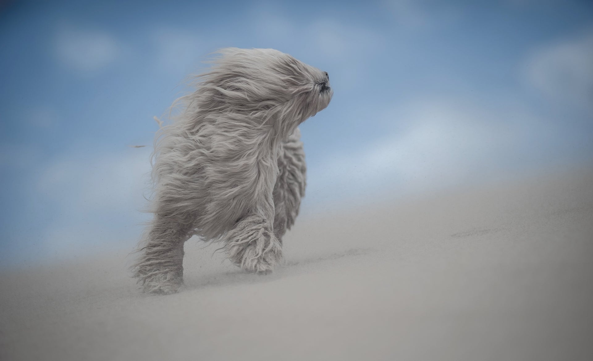 Although not built for the water, Doug loved the ocean. “That’s how we’d wash him; just throw him into the sea and give him a good old scrub. But he loved swimming. He had that much bloody fur on him that he’d just float. All his fur would be floating on the surface about a foot around him in all directions. He was like a floating carpet. Then he’d come in and look for something dead on the beach to roll in.”