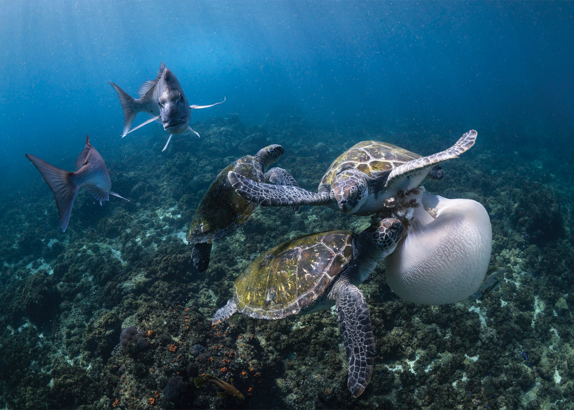 The largest piece of art that hangs on the old walls’ new grey-blue facade is a geometric acrylic painting of a mother and calf humpback by local activist/artist Howie Cooke called Night Reef Whales. Cetaceans soaring through deep ocean – it’s serene.