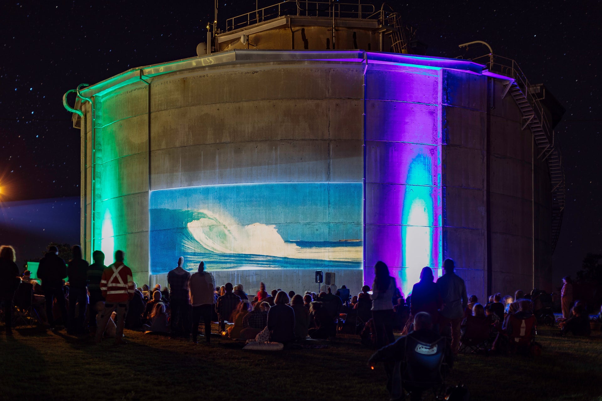 The people of Yamba gathered to watch Never Town screened on the side of the town’s water tower and to discuss the future of the Clarence River. Photo Jarrah Lynch